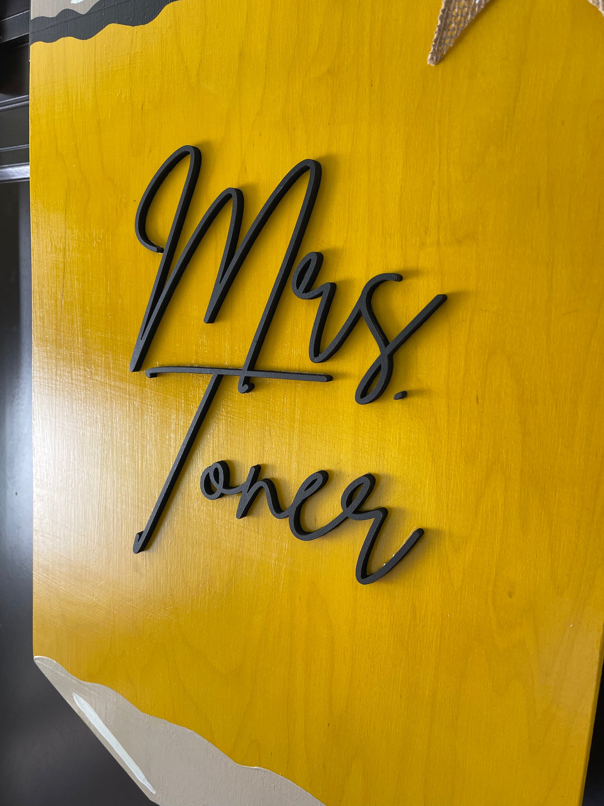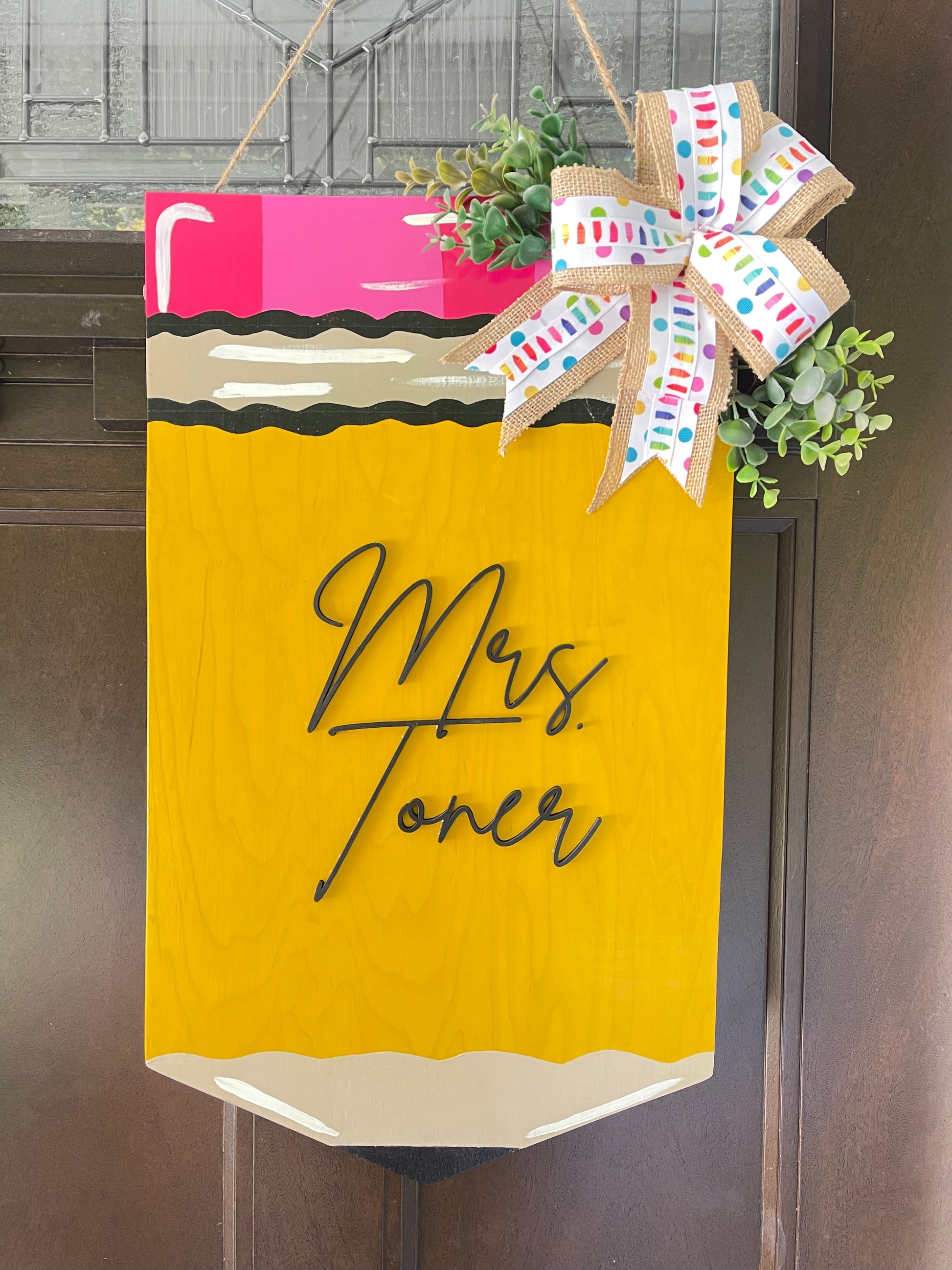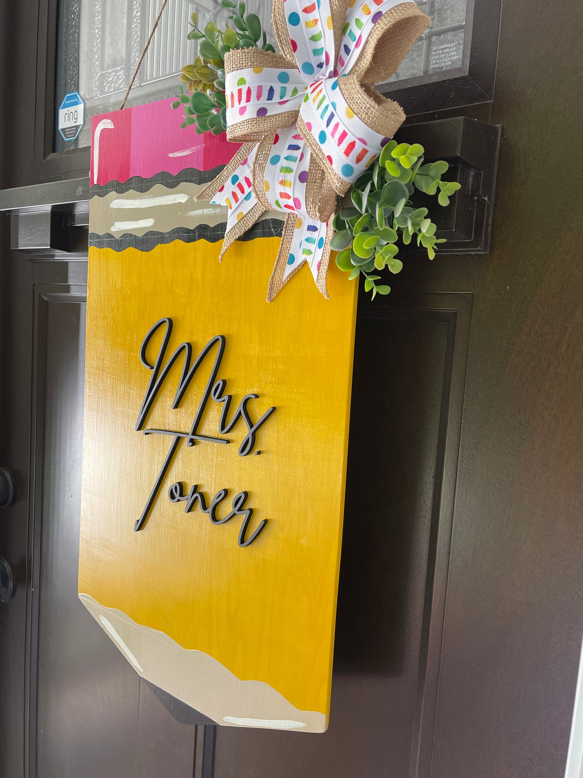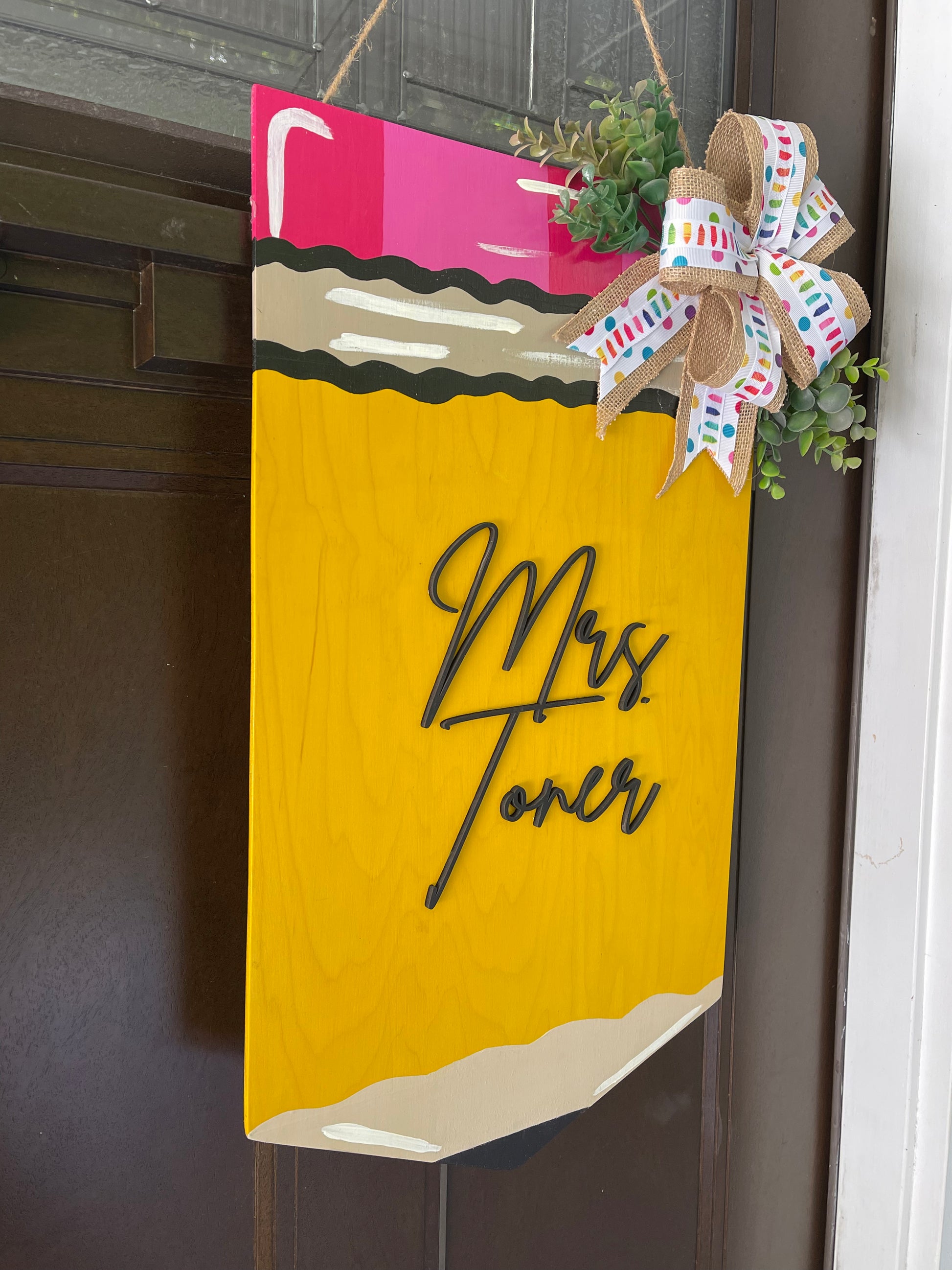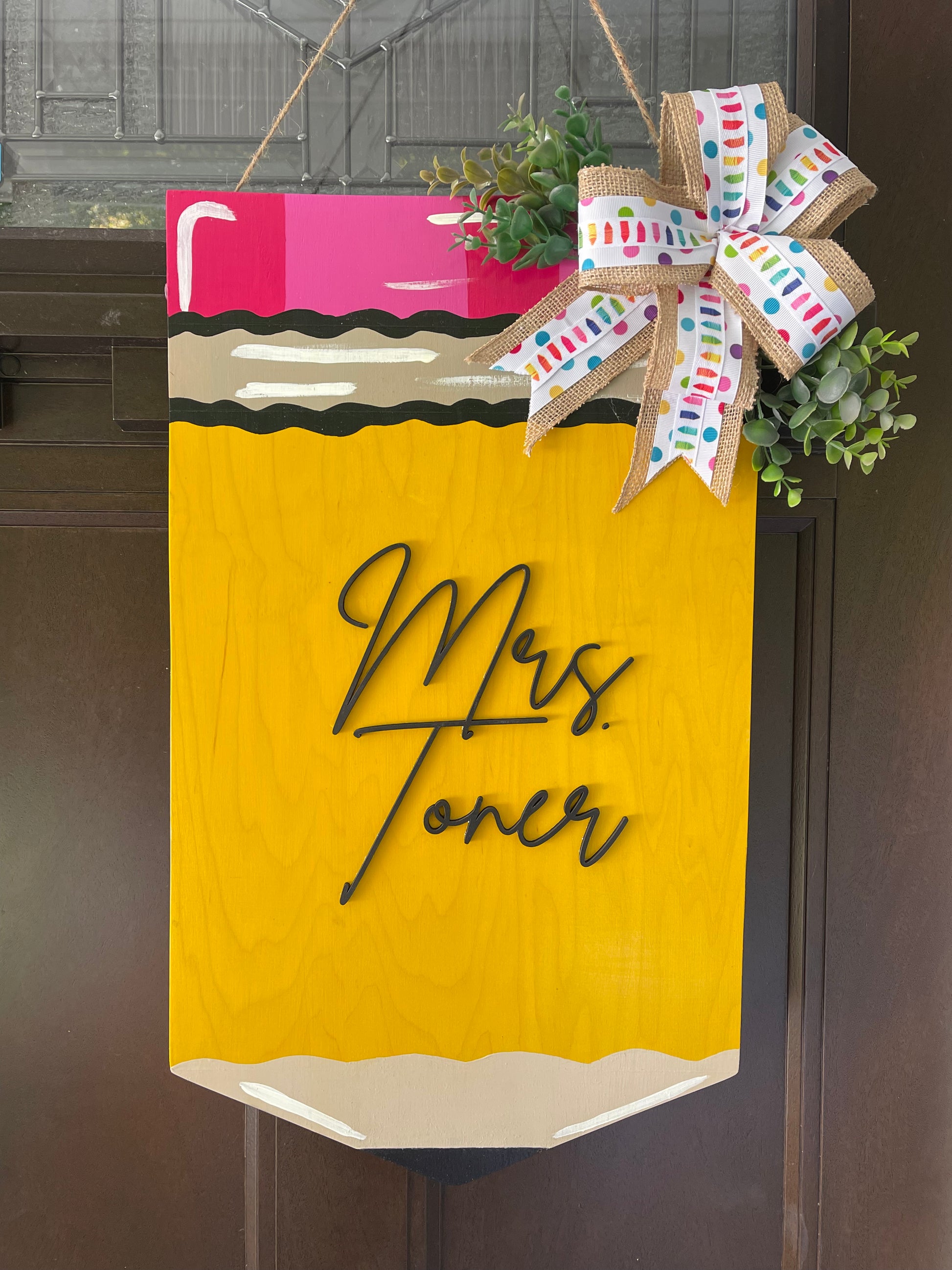 Show your appreciation for teachers with this beautiful wooden sign! Crafted and hand painted like a pencil, this home decor is perfect for the classroom or as a custom gift. Bring a unique and meaningful touch to any teacher's day!